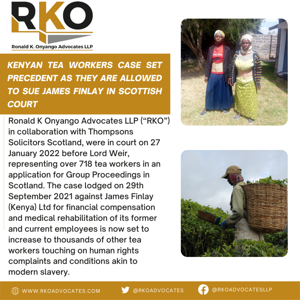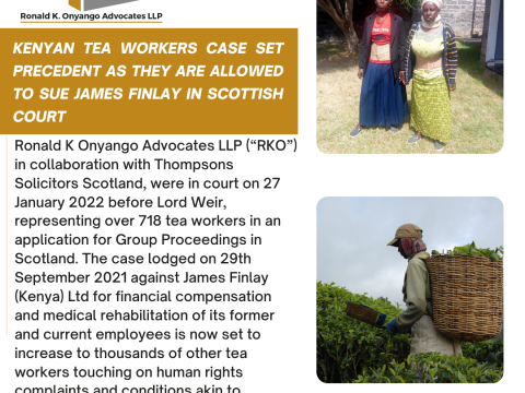 The Scottish Court has on 13th July 2022 stopped James Finlay (Kenya) Ltd (‘Finlay) from threatening, intimidating employees and from destroying, removing, or altering medical or […]