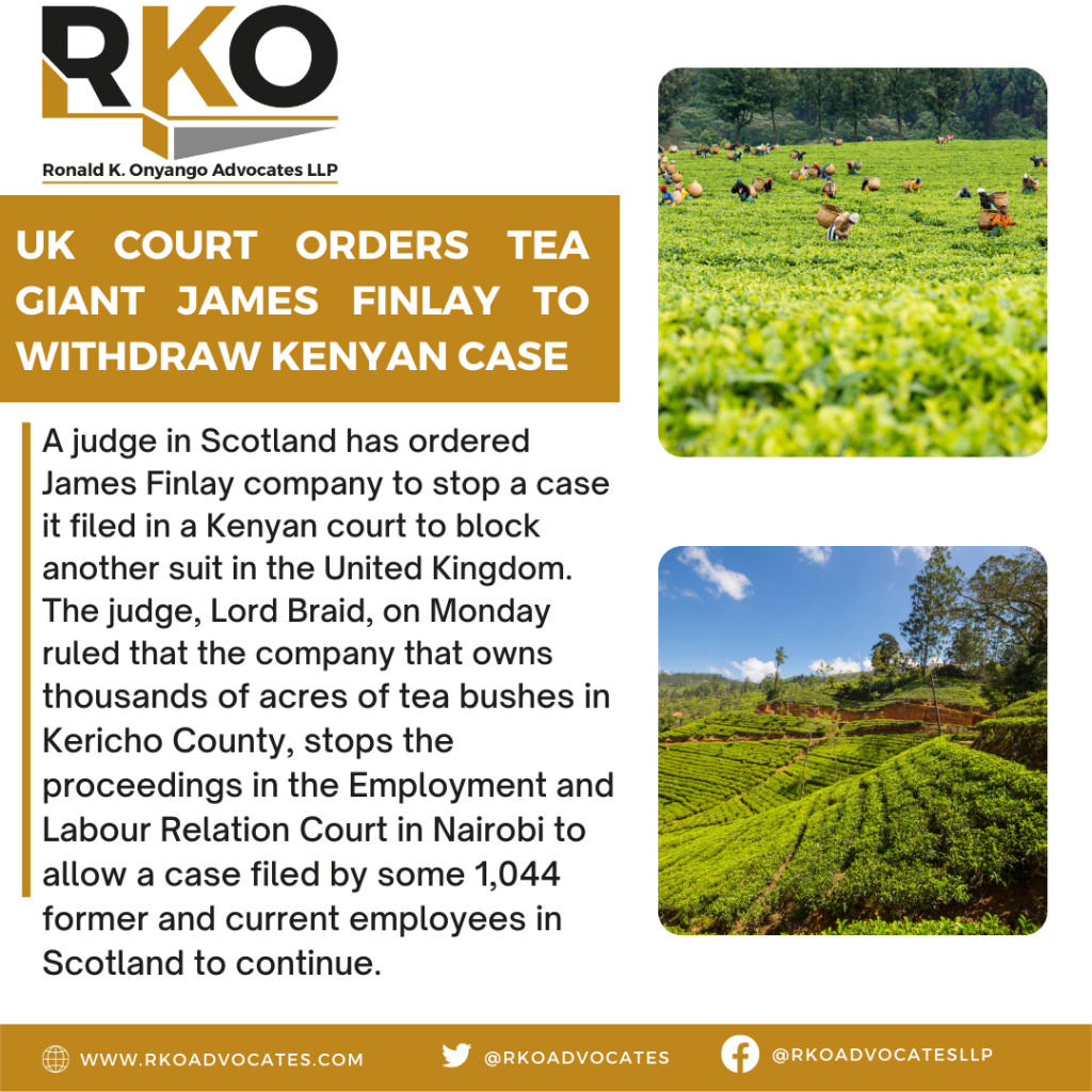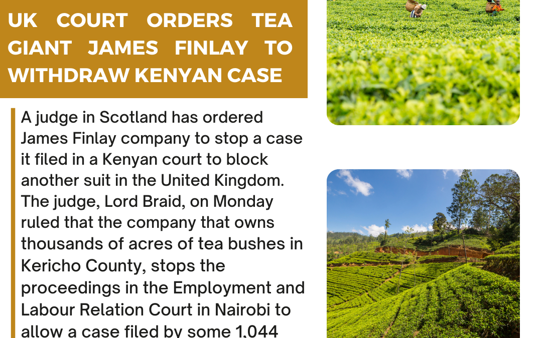 The judge, Lord Braid, on Monday ruled that the company that owns thousands of acres of tea bushes in Kericho County stops the proceedings